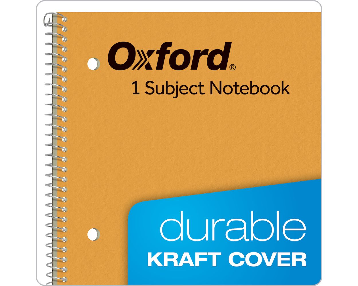 Oxford 1-Subject Kraft Notebooks have a durable, thick cover to survive heavy use and a sturdy, snag-resistant coil. 3-Hole punched to fit a standard binder. Proudly made in the USA. 8-1/2" x 11". Kraft cover. Green tint paper. College ruled, 80 sheets.