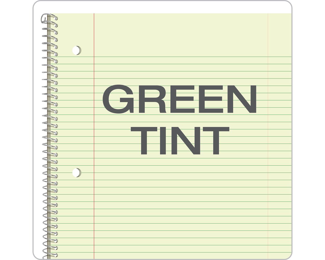 - 8-1/2" x 11"; green tint paper; college-ruled; 80 sheets; spiral bound